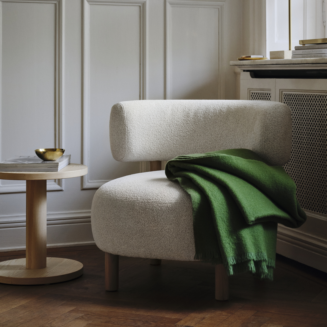 STOCKHOLM throw is made of 100% wool of which 50% is Merino wool. The extra fine fibres of the Merino wool make the throw super soft against the skin. Wool is resilient, durable and heat regulating to keep you cozy any season. Wool is also naturally dirt-repellent and self-cleaning. You don’t need to wash your throw often. Instead, air it occasionally and it will feel fresh again. The wool in this throw is certified according to the global Responsible Wool Standard (RWS).
