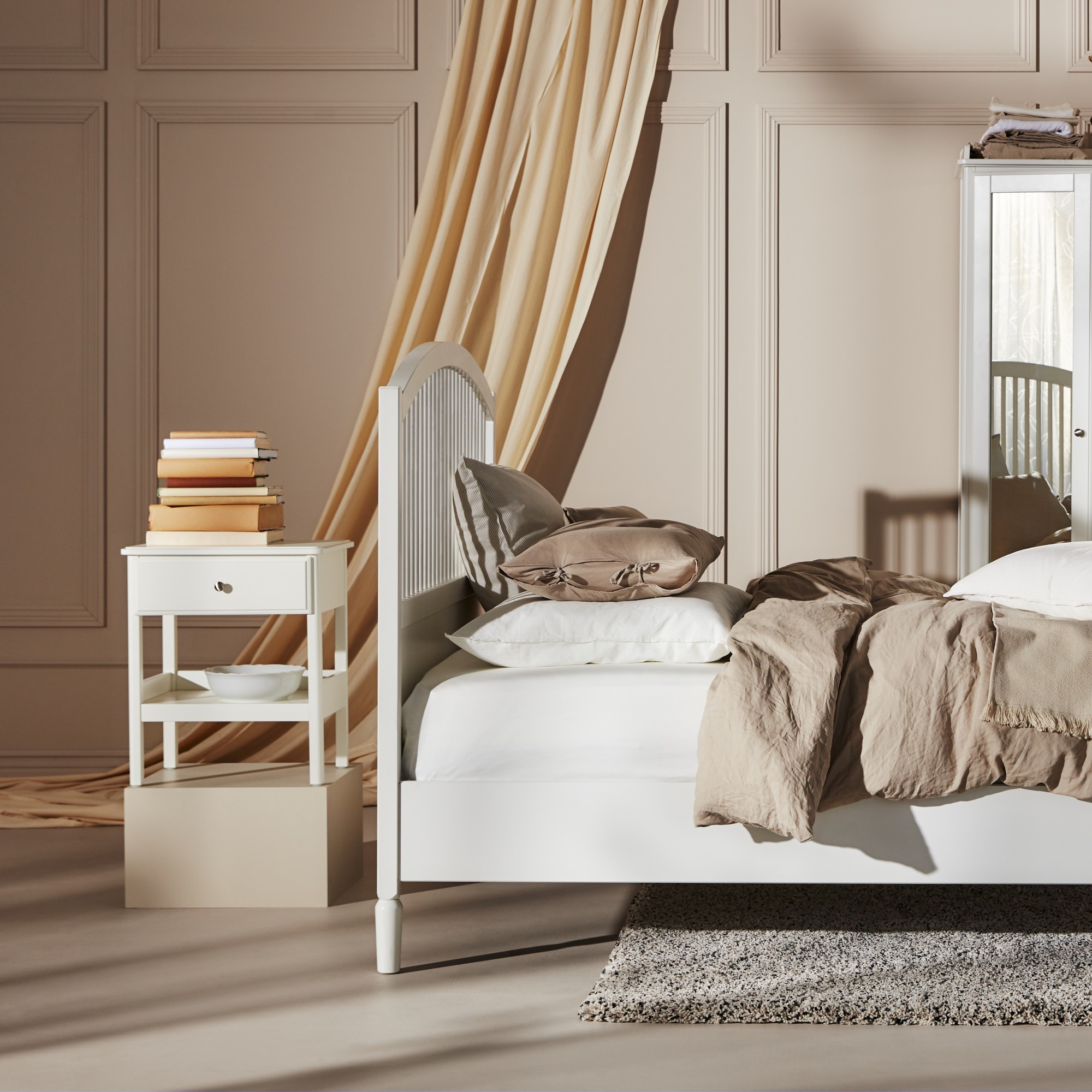 After a good read, tuck yourself in and tuck your book inside the soft-closing drawer. A traditional, Scandinavian look that matches perfectly with the other furniture in the TYSSEDAL series.