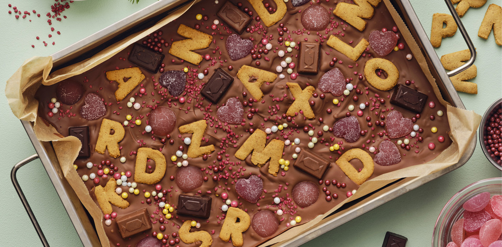 - Decora el chocolate con golosinas, golosinas, caramelos.