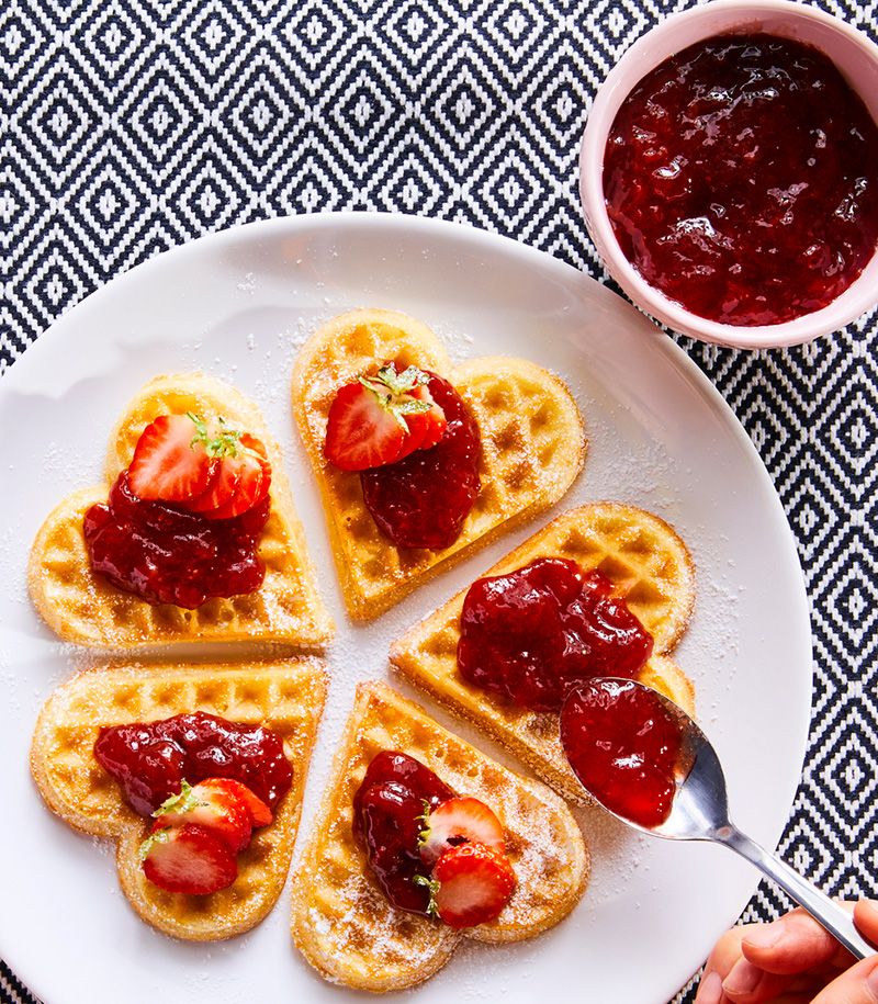 - Cuando los waffles estén hechos, córtalos en forma de corazón.
