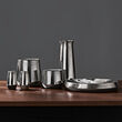 El acero inoxidable se puede moldear y tratar de muchas maneras, y AFTONHAJ fue una gran oportunidad para experimentar y probar ideas. Quería crear un aspecto clásico con un toque moderno. Todas las piezas tienen una superficie mate en la parte superior que gradualmente se transforma en un acabado brillante en la parte inferior. El efecto espejo, junto con el elegante toque difuminado de la parte inferior, hace que los productos casi floten sobre la mesa. Y el acabado mate también es práctico, ya que no se ven tan fácilmente las huellas dactilares.
