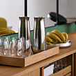 Una garrafa moderna y minimalista con acero brillante y un acabado con textura. Diseñada para bebidas frías y para llevarse a la mesa. Forma parte de la serie de acero inoxidable AFTONHAJ.