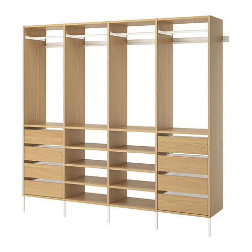 El sistema de almacenamiento AURDAL permite personalizar una solución para cualquier armario o vestidor. La bonita chapa cepillada confiere un acabado texturizado característico de la madera.