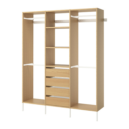 El sistema de almacenamiento AURDAL permite personalizar una solución para cualquier armario o vestidor. La bonita chapa cepillada confiere un acabado texturizado característico de la madera.