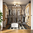El sistema de almacenamiento AURDAL permite personalizar una solución para cualquier armario o vestidor. La bonita chapa cepillada confiere un acabado texturizado característico de la madera.