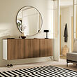 Una bufetera elegante y práctica con almacenamiento oculto tras las puertas y espacio para poner adornos en la parte superior. El panel superior con efecto nogal aporta calidez y oculta las uniones entre los tres gabinetes.