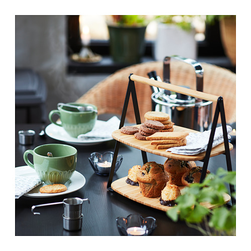 Gracias a los dos niveles y al asa resistente, puedes llevar los vasos y los platos cómodamente hasta la mesa.