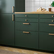 Los pomos y las manijas son pequeños detalles que marcan una gran diferencia. HAMPHULT en roble macizo le da un estilo auténtico a la estancia, mientras que las vetas de madera crean un ambiente acogedor.