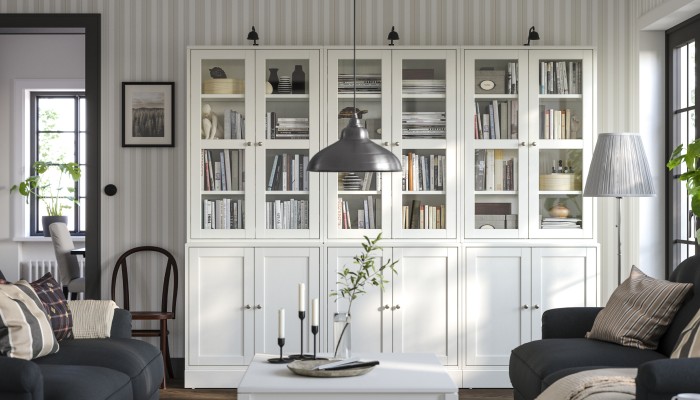 Los muebles de la serie HAVSTA se han diseñado para que combinen a la perfección. Puedes combinarlos para crear tu propia solución o dejar cada uno como un bonito mueble independiente.