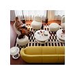 Looking for hotel lounge design ideas? Check out this lounge with eye-catching statement pieces and a modern look that goes all-in for its round, curvy theme.
