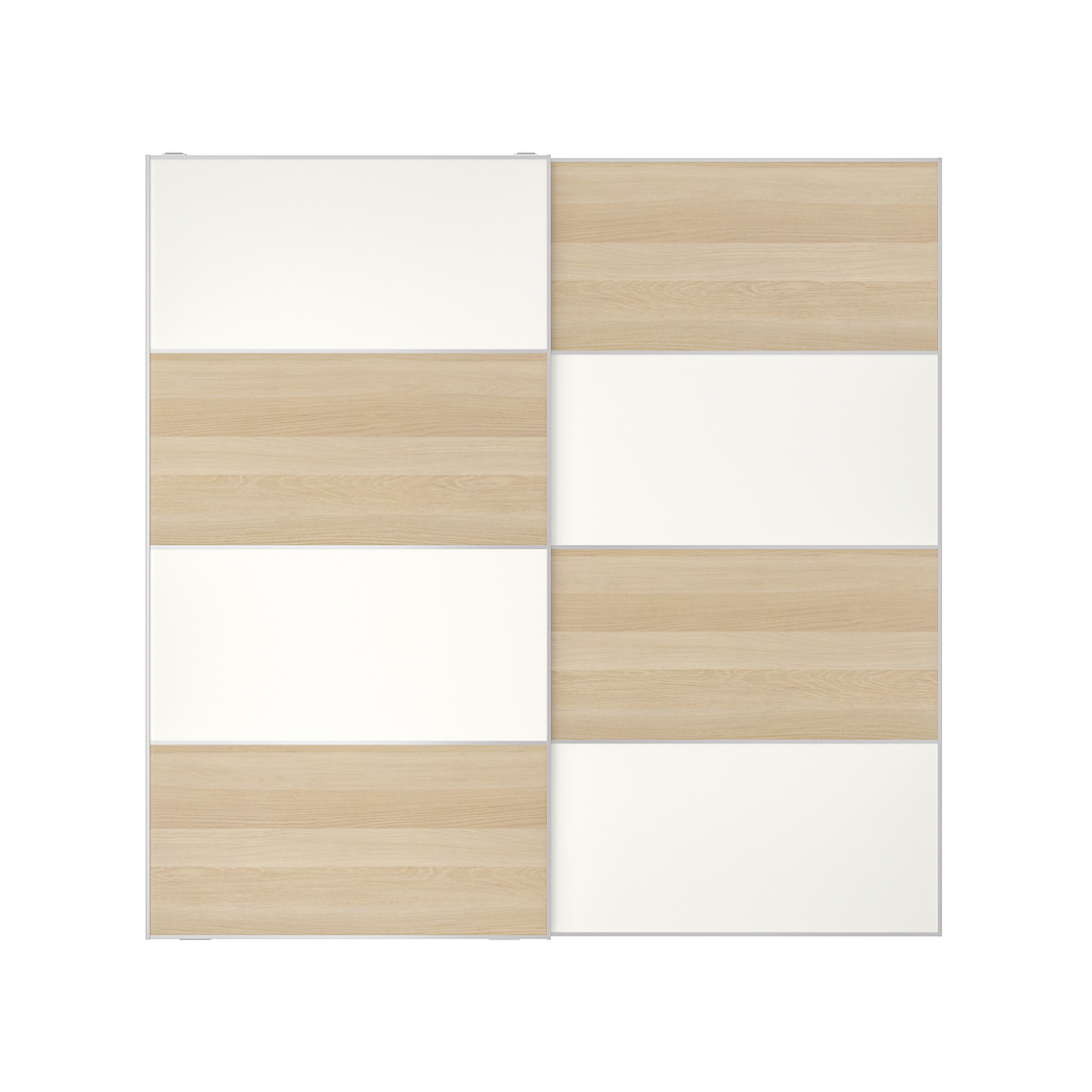 Los paneles MEHAMN tienen un acabado en efecto de madera que combina perfectamente con los armazones PAX y los productos de la serie MALM.