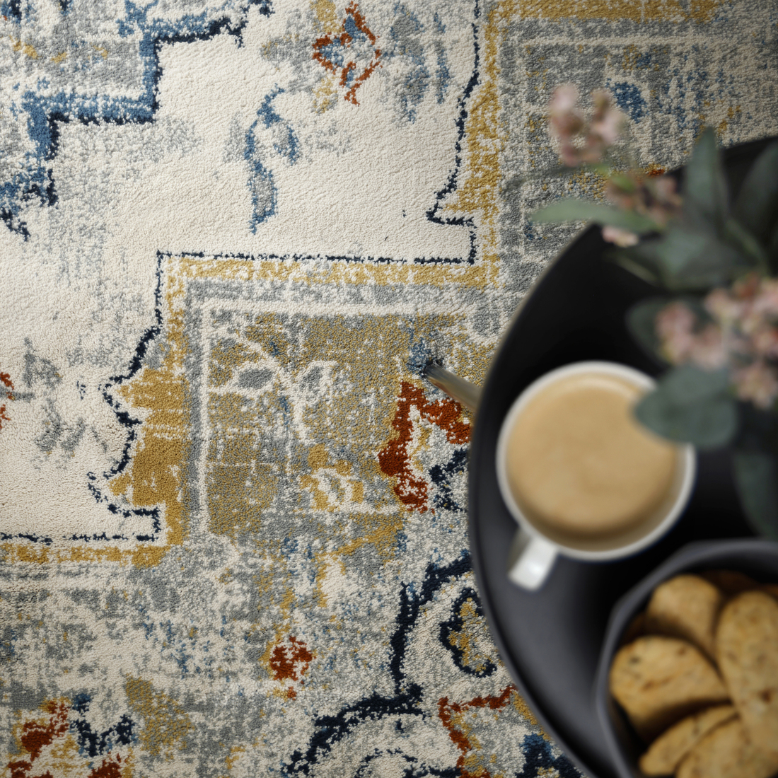 La expresión oriental difuminada de esta alfombra le da un toque especial a tu habitación. Una buena elección para quienes buscan una alfombra duradera y resistente a las manchas que quede igual de bien en el sofá o debajo de la mesa del comedor.
