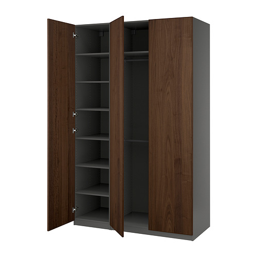 PAX / BJÖRNESKOGEN combinación de armario, gris oscuro / chapa de nogal