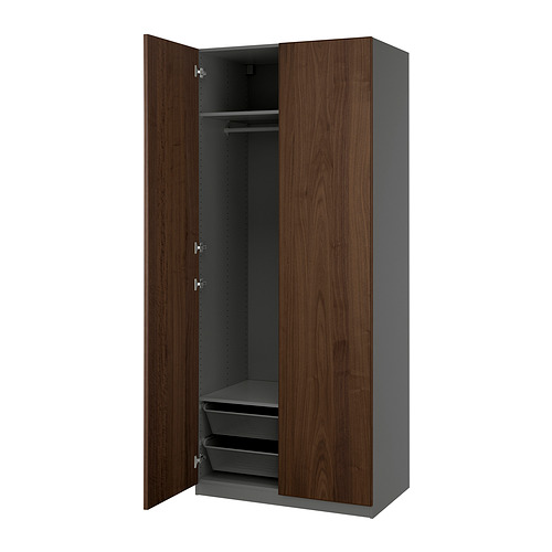 PAX / BJÖRNESKOGEN combinación de armario, gris oscuro / chapa de nogal