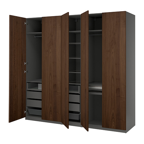 PAX / BJÖRNESKOGEN combinación de armario, gris oscuro / chapa de nogal