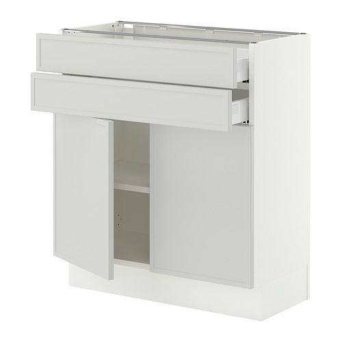 SEKTION / MAXIMERA gabinete bajo+2 puertas / 2 cajones, blanco / Aspudden gris claro