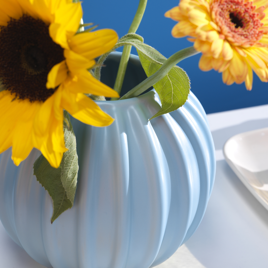 Para el relanzamiento, hemos aprovechado la oportunidad de actualizar el material de cerámica con sílex a cerámica vidriada. También hemos cambiado la apertura del florero para que tenga forma anular y hemos renovado los colores.