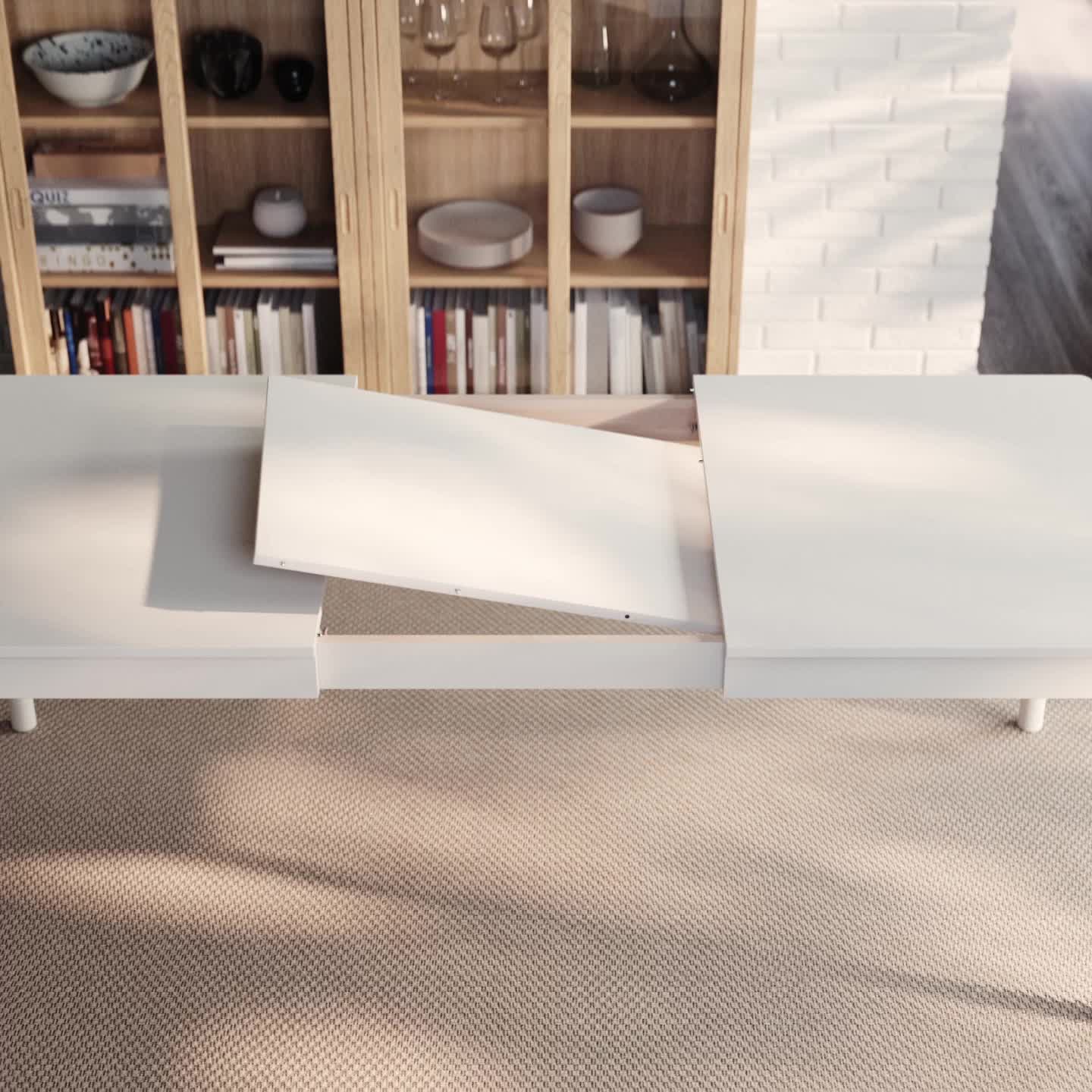 El ala de extensión, que se guarda dentro de la mesa, es fácil de montar y permite que la mesa pase a tener capacidad para seis personas. Cuando los invitados se hayan ido, te resultará igual de sencillo quitarla y ocultarla.
