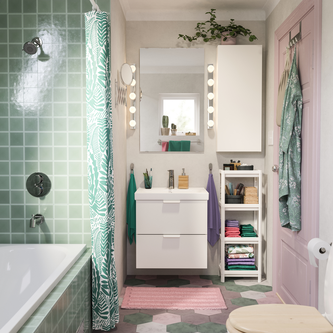 Sabemos que es importante diseñar buenos accesorios para todo tipo de baños. Por eso la mayoría de los armarios y los accesorios son de plástico y por tanto, ideales para ubicar cerca de la ducha o del baño. Elige entre nuestras colecciones VESKEN, TISKEN y BOLMEN para crear un baño funcional y organizado, donde puedas salpicar por todas partes sin que te preocupe verter agua sobre los muebles.
