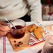 Disfruta de la versión invernal del "fika" con vino especiado o una bebida sueca típicamente navideña en lugar de café, y sírvelo con galletas de jengibre y bollos de azafrán.