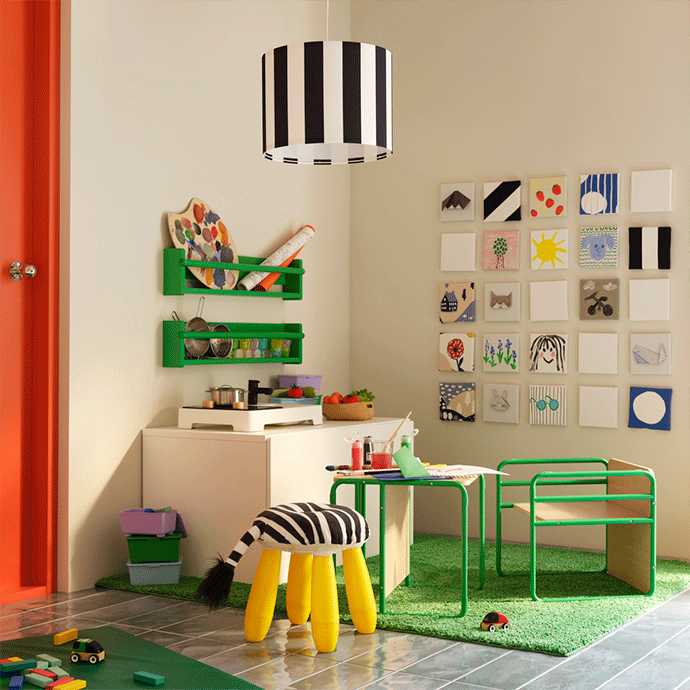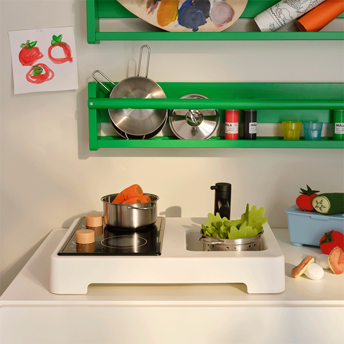 Y cuando pensabas que este salón no podía ser más completo..., ¡vas y descubres este adorable restaurante a la carta en un rinconcito! Un espacio donde los mayores pueden relajarse mientras los más pequeños de la casa se divierten y preparan una deliciosa cena para sus peluches favoritos.