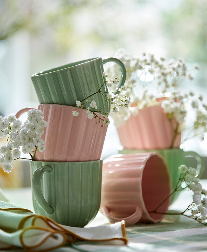 With a few creative touches, cheerful patterned tablecloths, pastel-colored mugs, and items made from natural materials such as rattan and cotton, your table can turn any meal into a springtime celebration.