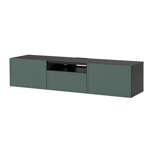 BESTÅ TV bench, black-brown / Krukmakare dark gray-green