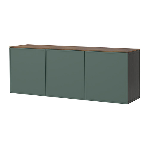 BESTÅ wall-mounted cabinet combination, black-brown Krukmakare / dark gray-green walnut effect