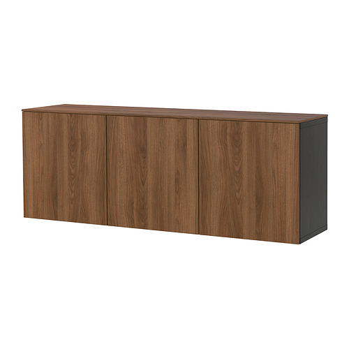 BESTÅ wall-mounted cabinet combination, black-brown / Lappviken walnut effect