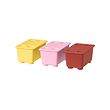 These 3 colorful and stackable boxes with lids happily take care of small toys and desk accessories until you or your child needs them again. Made of durable plastic, of which at least 50% is recycled.