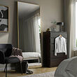 HOVET mirror can hang either on a wall or be placed on the floor anchored and tilted against a wall.