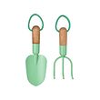 Comprises: 1 garden trowel (length 10.24 inches/width 2.95 inches) and 1 hand cultivator (length 8.27 inches/width 2.95 inches).