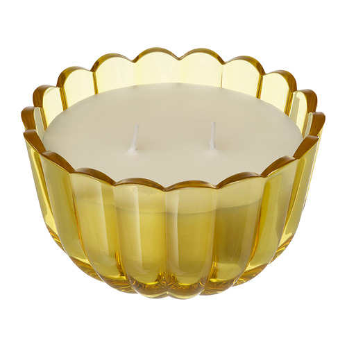 MORKULLA scented candle in glass, 2 wicks, Citrus flower bright yellow-green