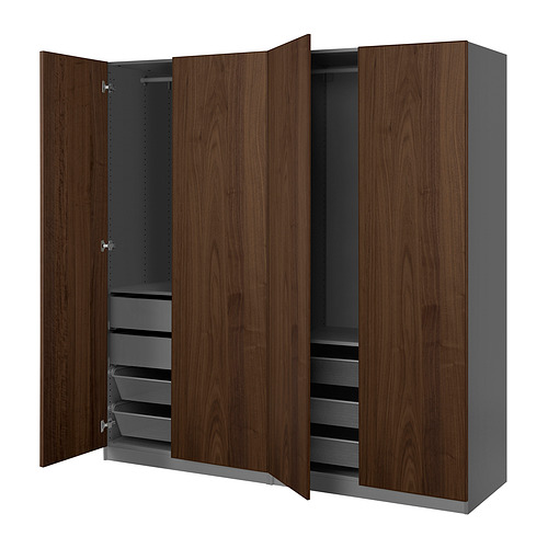 PAX / BJÖRNESKOGEN wardrobe combination, dark gray / walnut veneer