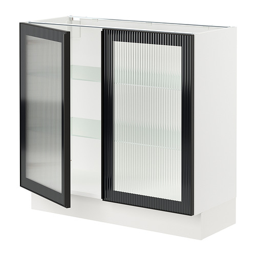 SEKTION base cabinet with 2 glass doors, white / Hejsta anthracite reeded glass
