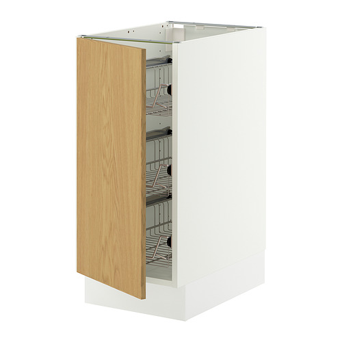 SEKTION base cabinet with wire baskets, white / Sinarp oak veneer