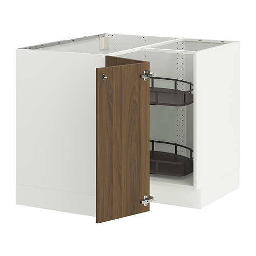 SEKTION corner base cabinet with carousel, white / Tistorp brown walnut effect