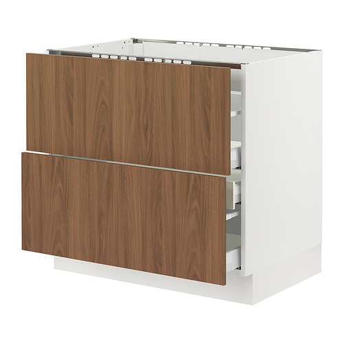 SEKTION / MAXIMERA base cab f cktp / 2 fronts / 3 drawers, white / Tistorp brown walnut effect