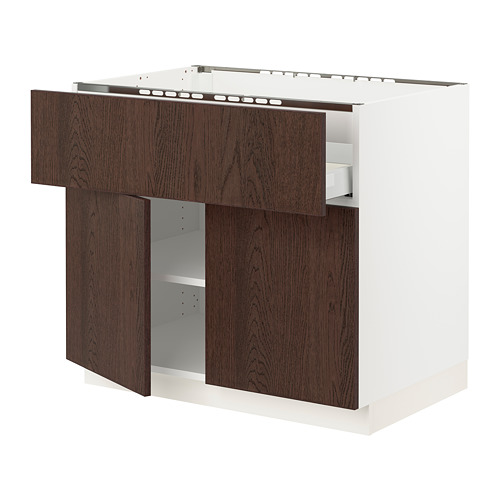 SEKTION / MAXIMERA base cab f cktp / dw / shelves / 2drs, white / Sinarp brown