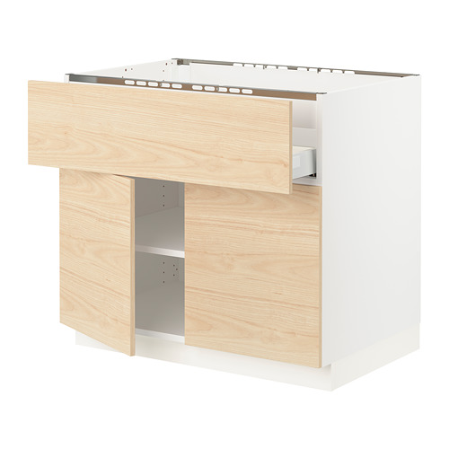 SEKTION / MAXIMERA base cab f cktp / dw / shelves / 2drs, white / Askersund light ash effect