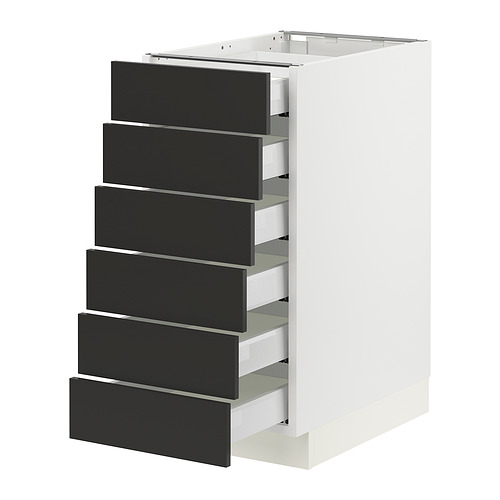 SEKTION / MAXIMERA base cabinet 6 fronts / 6 low drawers, white / Nickebo matte anthracite