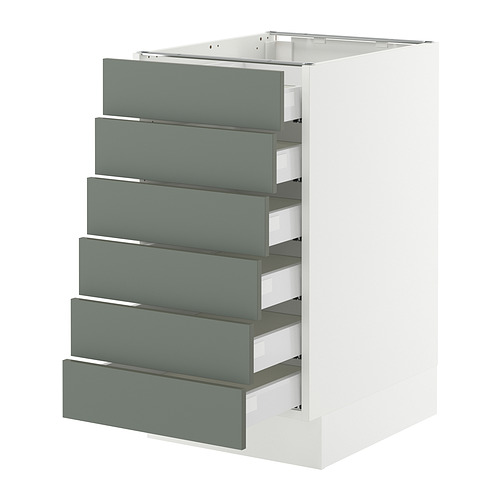SEKTION / MAXIMERA base cabinet 6 fronts / 6 low drawers, white / Nickebo matt grey-green