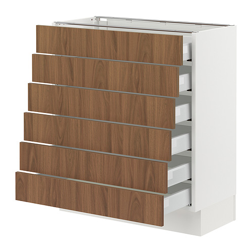 SEKTION / MAXIMERA base cabinet 6 fronts / 6 low drawers, white / Tistorp brown walnut effect