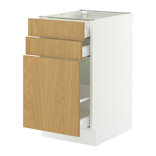 SEKTION / MAXIMERA base cabinet / p-out storage / 2 drwrs, white / Sinarp oak veneer