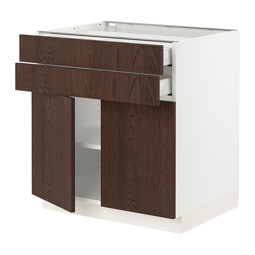 SEKTION / MAXIMERA base cabinet w 2 doors / 2 drawers, white / Sinarp brown