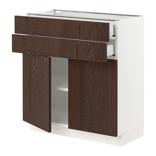 SEKTION / MAXIMERA base cabinet w 2 doors / 2 drawers, white / Sinarp brown