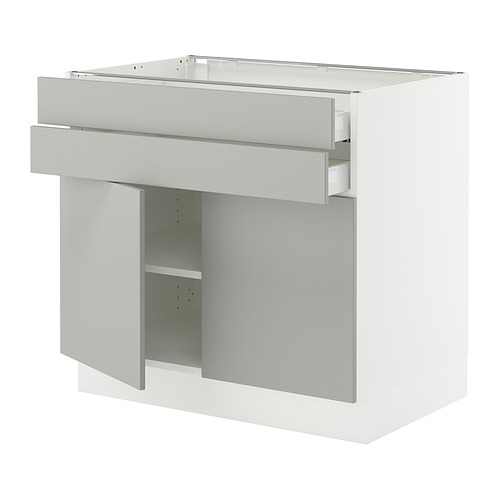 SEKTION / MAXIMERA base cabinet w 2 doors / 2 drawers, white / Havstorp light gray