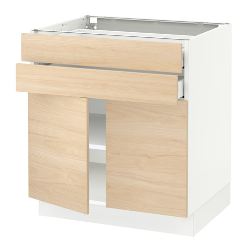 SEKTION / MAXIMERA base cabinet w 2 doors / 2 drawers, white / Askersund light ash effect