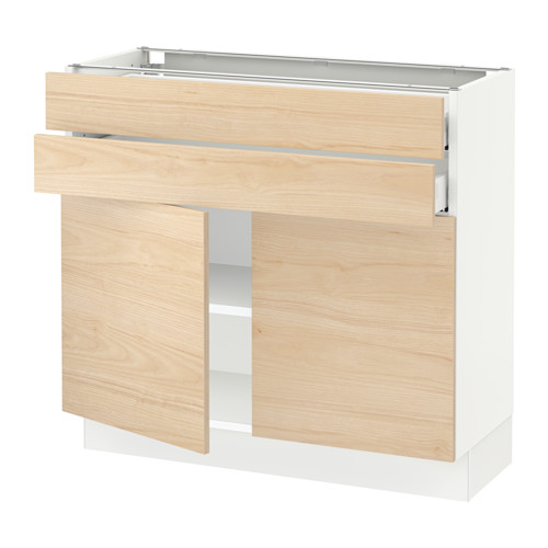 SEKTION / MAXIMERA base cabinet w 2 doors / 2 drawers, white / Askersund light ash effect