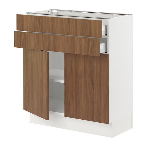 SEKTION / MAXIMERA base cabinet w 2 doors / 2 drawers, white / Tistorp brown walnut effect